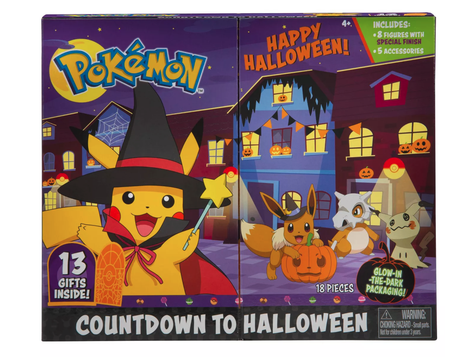 Så er der spooky nyheder til alle Pokémon fans! Her kan I nemlig få fat på den eksklusive Pokémon Halloween Countdown kalender for 2021. Hver kalender kommer med 8 figurer på ca. 5 cm. plus masser af sjovt Halloween tilbehør! Man kan sagtens se, at det er Halloween, for Eevee har taget heksehat på til lejligheden, og Zubat har fået fat i et græskarhoved, der er propfyldt med slik. Børn i alle aldre og Pokémon fans vil nyde de spændende overraskelser og at lave deres egen Pokémon Halloween udstilling med kalenderen som display. Gotta Catch ‘Em All!™