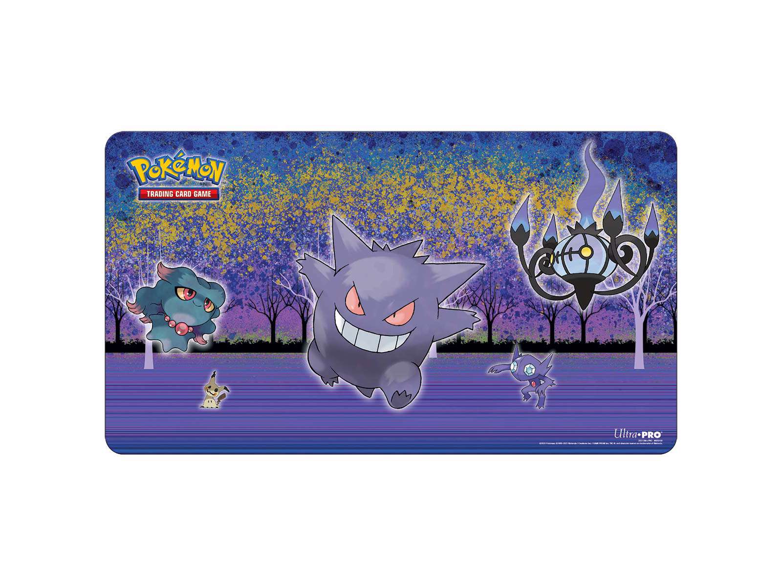 Lækker Ultra PRO Pokémon playmat med superskarp og farverig illustration med Gengar, Misdreavus, Sableye, Chandelure & Mimikyu i et dystert skovlandskab. Den er lavet med en blød overside af stof, som sikrer, at dine kort ikke tager skade, mens du spiller og en bagside med non-slip, der sørger for at måtten ikke flytter sig, når den først ligger på bordet.