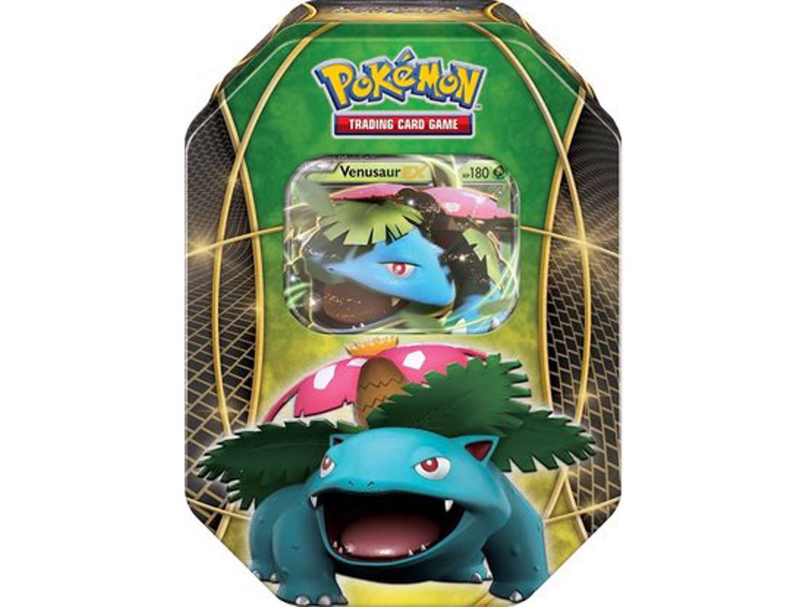 Pokémon XY 2014 tinbox indeholder et Venusaur ex kort, 4 Pokémon booster pakker, et TCG online bonus kort.