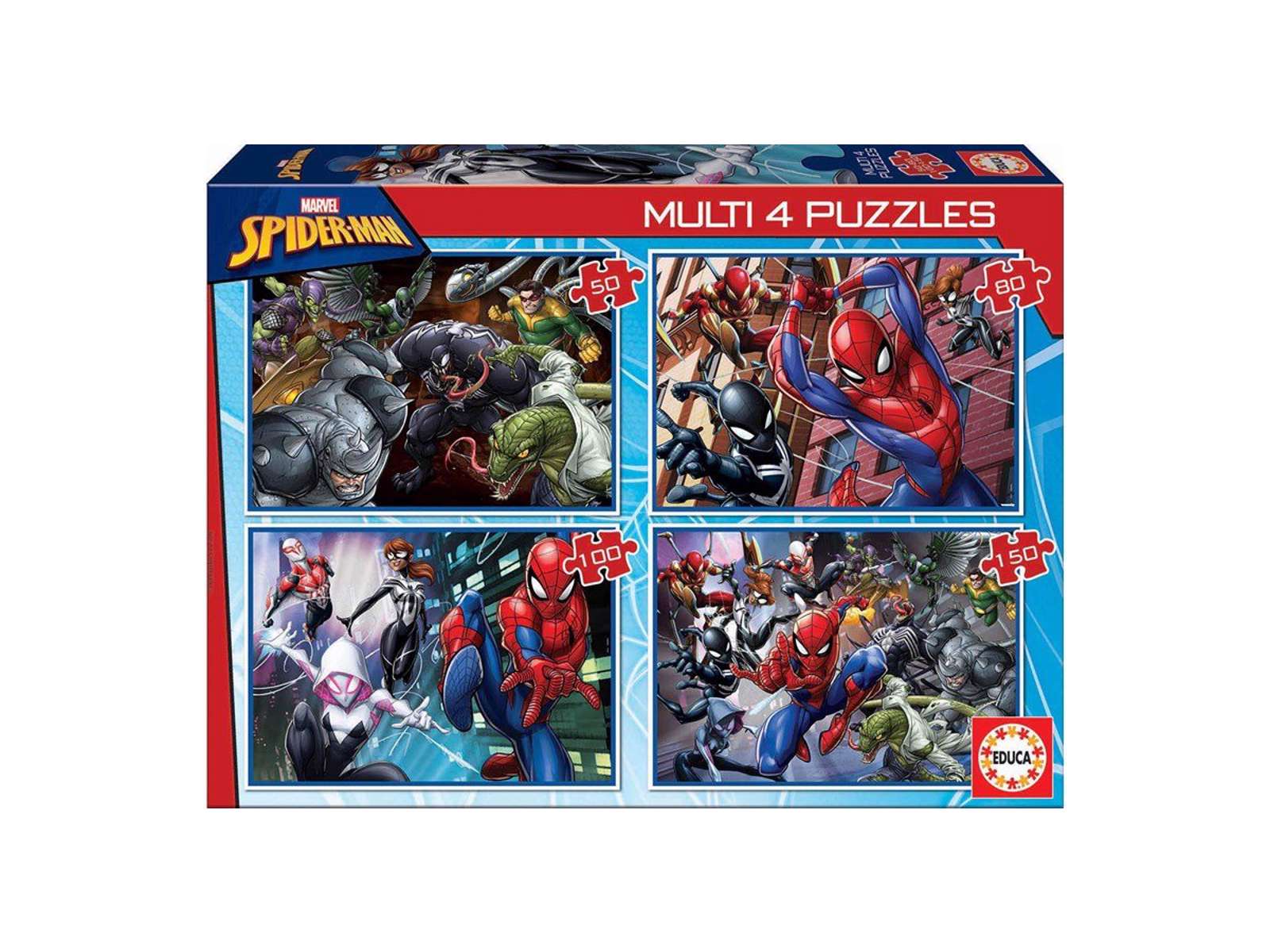 Spider-Man 4-pak puslespil på 50-80-100-150 brikker fra Educa