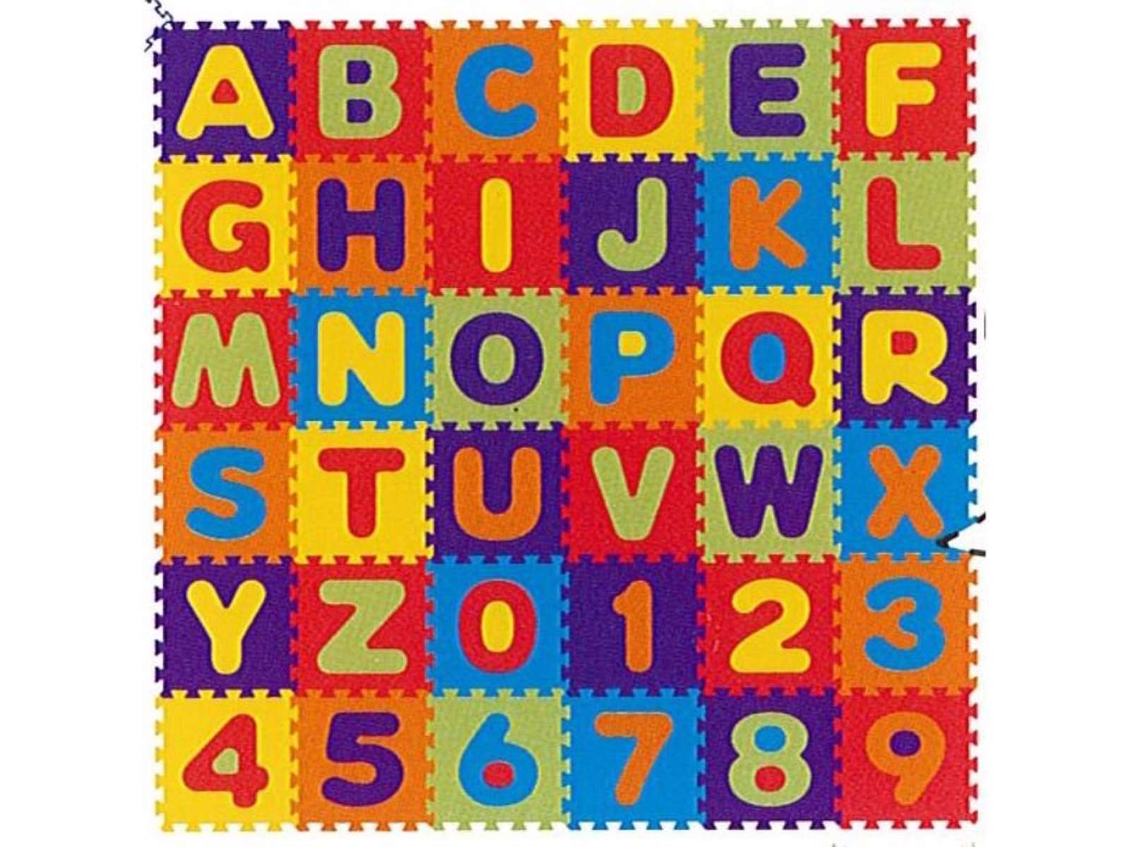 Gulvpuslespil med alfabet og tal på 180 x 180 cm