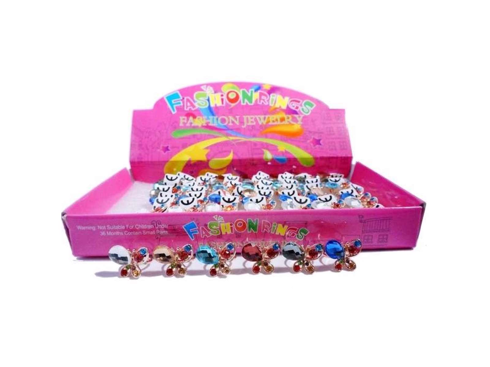 Fin ring med stor, smuk sommerfugl. Kommer i mange forskellige farver. Kontakt butikken for lagerstatus hvis en bestemt ønskes. Prisen er for 1 ring.