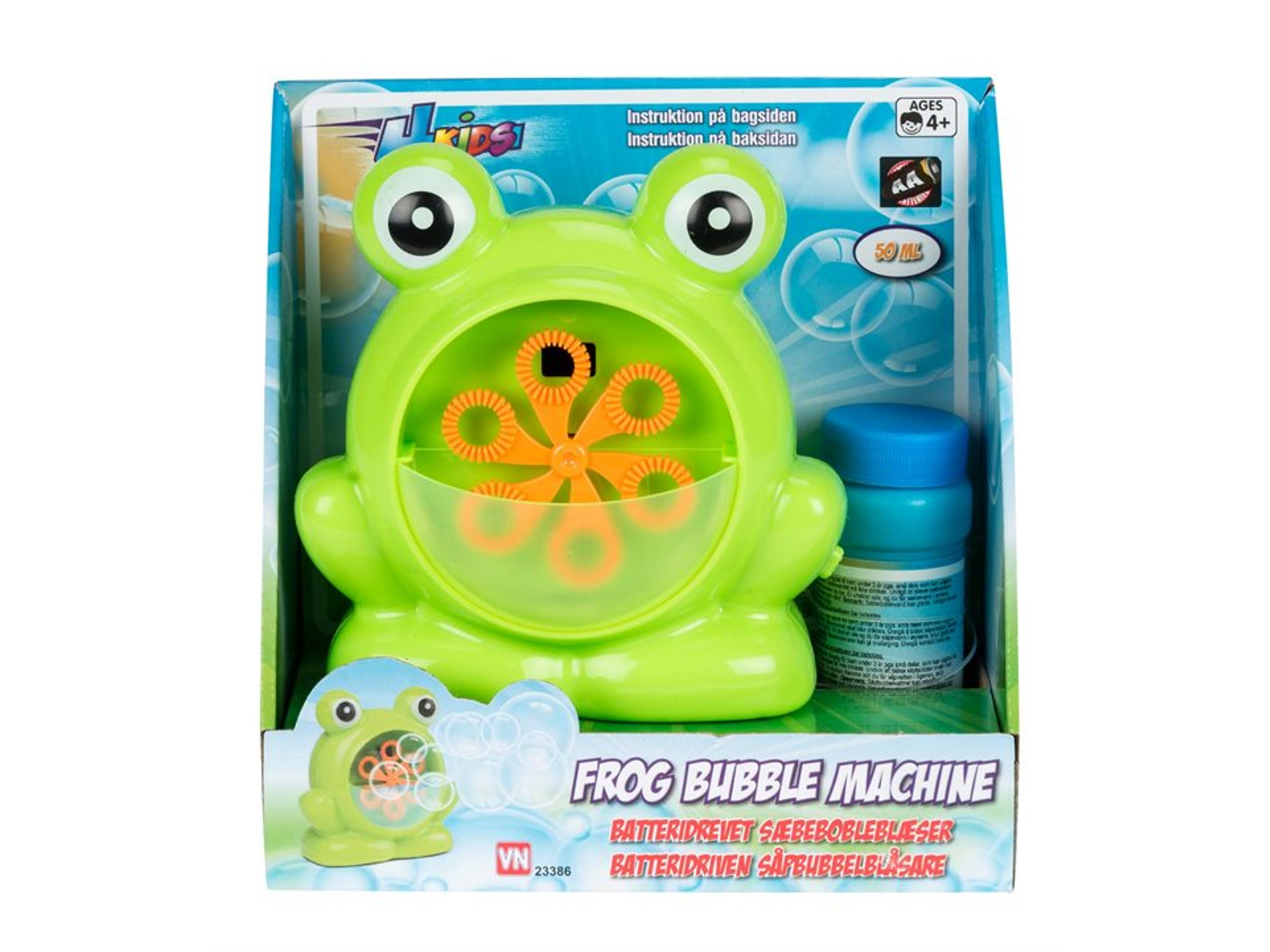 Sjov sæbeboblemaskine formet som en tyk frø.