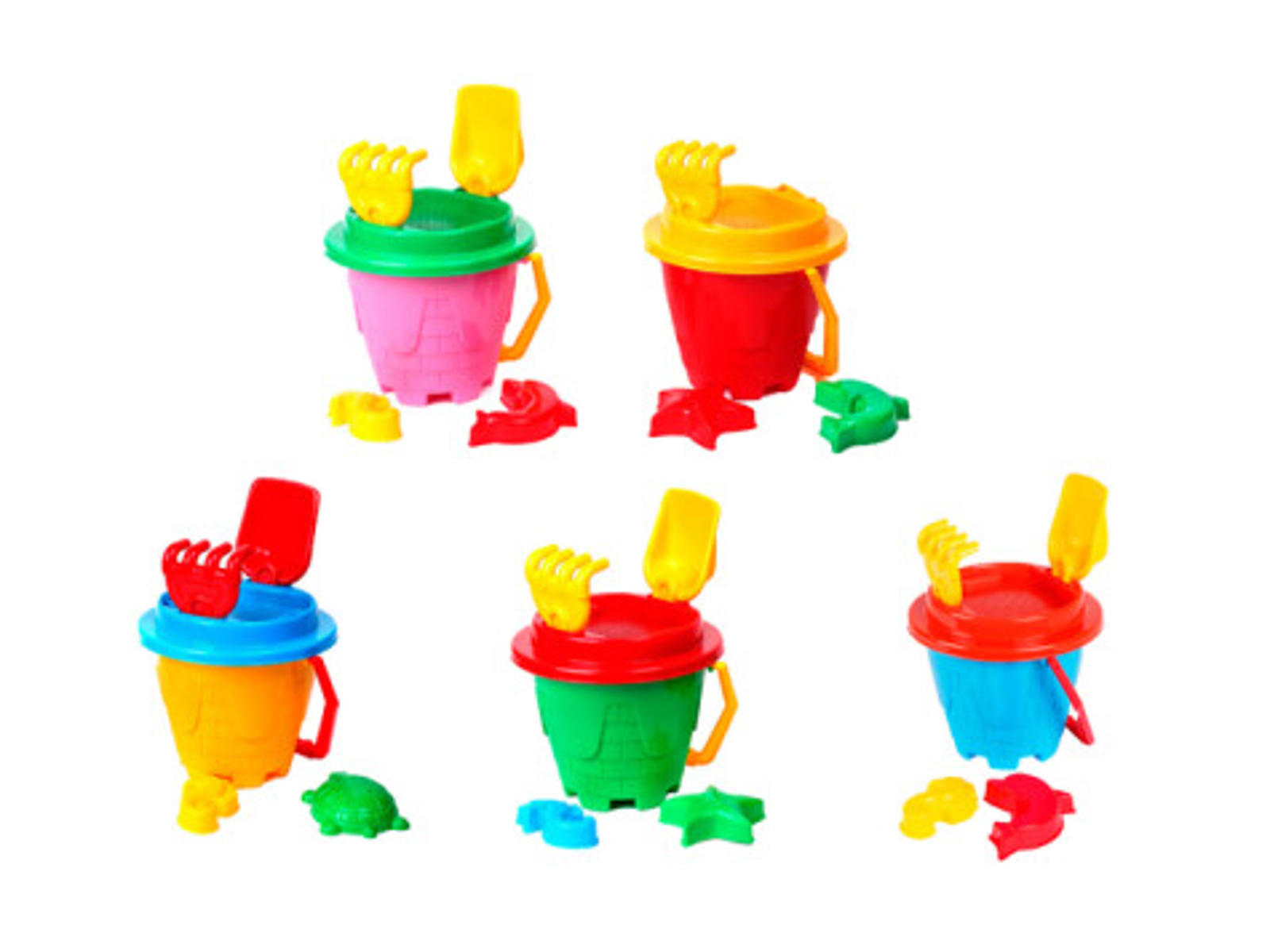 HAPPY SUMMER Strandsæt med spand og redskaber - 5 asst. 19x21x26cm
