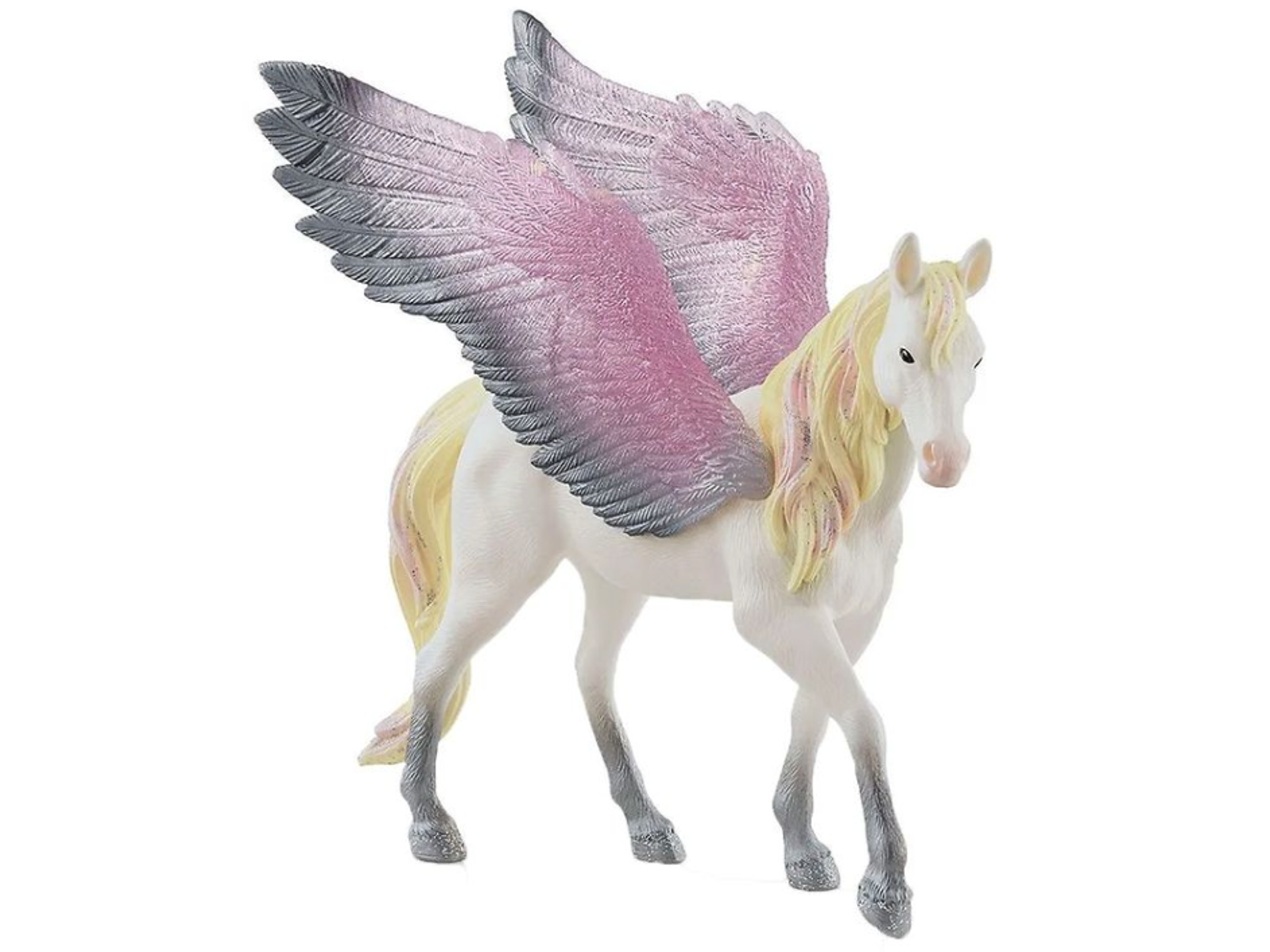 Her kan du få en smuk Sunrise pegasus-hoppe fra Schleich BAYALA. Hun har skønne farver, der er inspireret af solopgangen og masser af glitter i sin lange manke!
