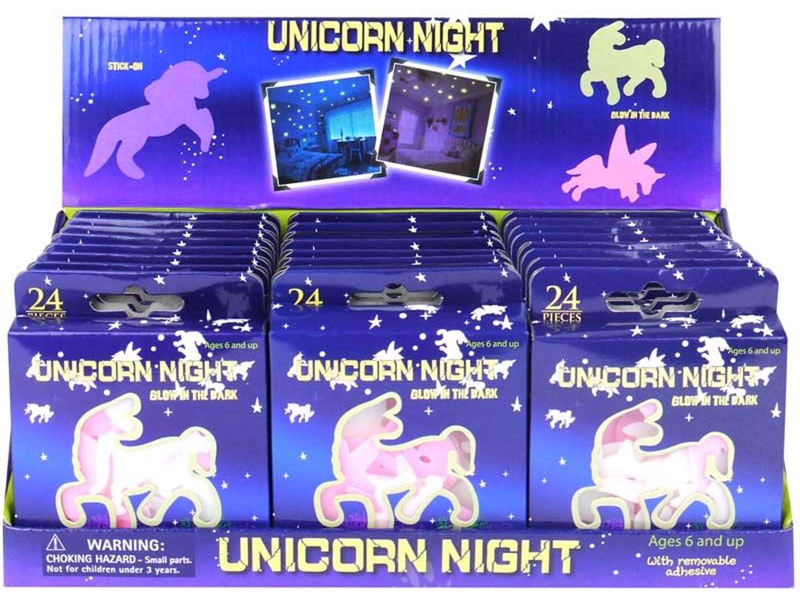 Pynt værelset med disse flotte, selvlysende enhjørninger. I pakken er der 24 lyserøde og hvide enhjørninger som du nemt sætter fast i loftet eller på væggen, så de kan lyse i værelset om natten. Ligeså let som enhjørningerne er at sætte op med de medfølgende klisterpuder, ligeså nemme er de at tage ned. Enhjørningerne er ca. 6x4 cm.