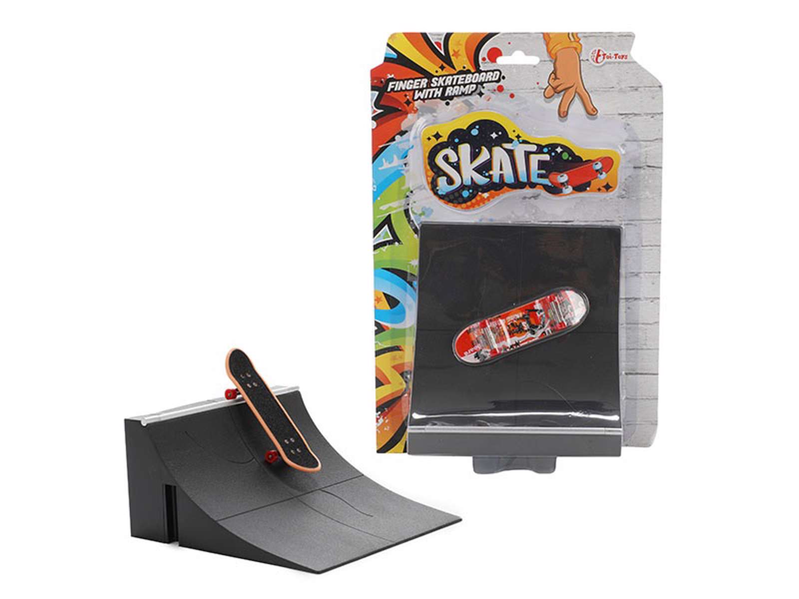 her får du en fed lille rampe og et fingerskateboard så du kan komme i gang med at lave tricks lige ud af pakken