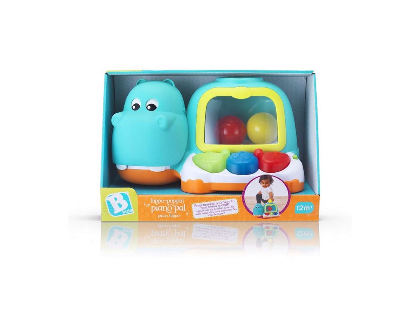 Sød flodhest med 2 Bolde og pianolyd. Ja tre taster er en form for piano.