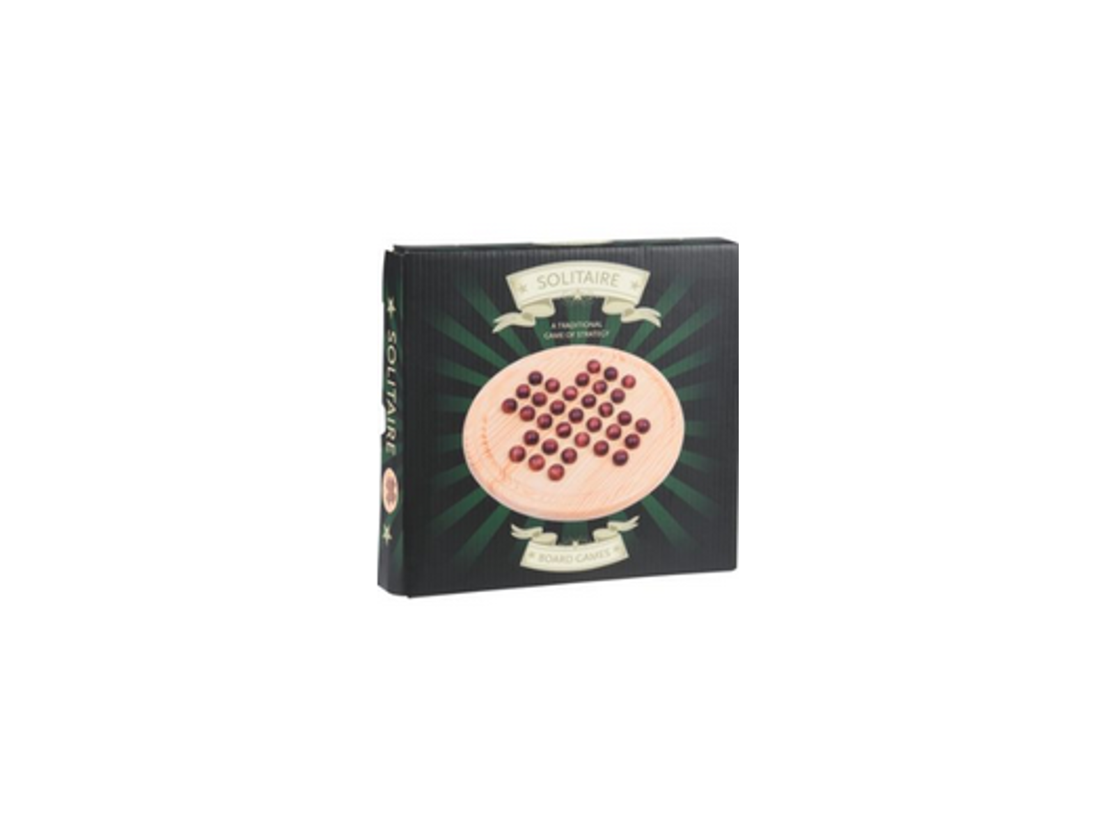 Solitaire brætspil, træ 22x18x22cm inkl 32 kugler
