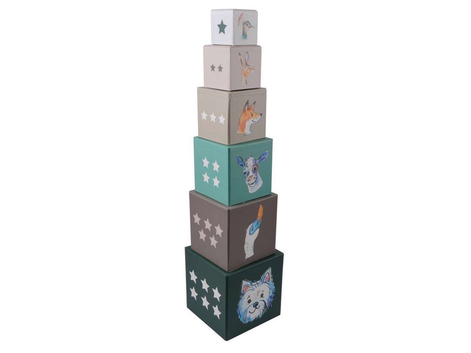 Stabeltårnet er et rigtig flot stykke legetøj med mulighed for mange timers leg. Det er med 6 klodser, med forskellige billeder af dyr, tal og stjerner.