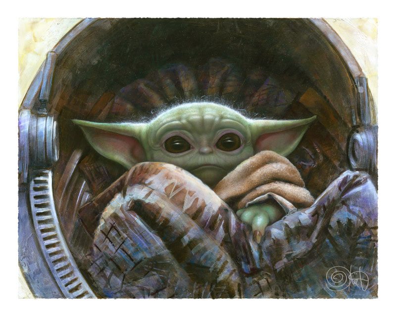 Each The Child Fine Art Print is a faithful reproduction of Olivia's original acrylic-on-wood-painting, capturing all of the precious and painstaking detail in a fine art collectible format. The Child Fine Art Print is limited to an edition size of 1000 pieces, each hand-signed by the artist and accompanied by a Certificate of Authenticity, making this a must-have fine art collectible for Star Wars fans.