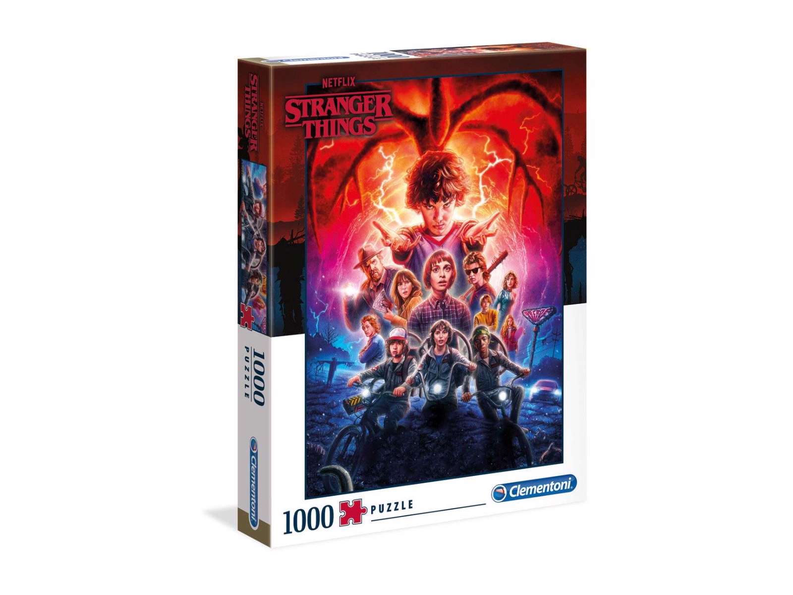 Fedt puslespil med motiv fra tv-serien Stranger Things. Det måler 69 x 50 cm når det er lagt og er på 1000 brikker.