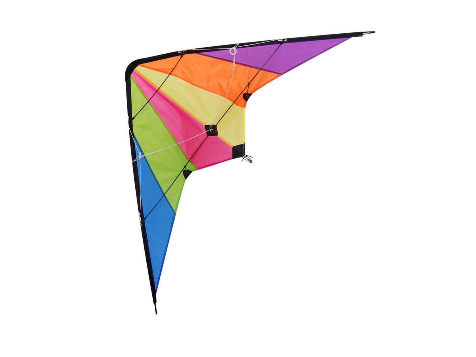 Sej Delta stuntdrage på 120x60 cm. Den har nylonsejl, glasfiberstænger og 2x50 meter line. Så er det med at komme ud i blæsevejret.