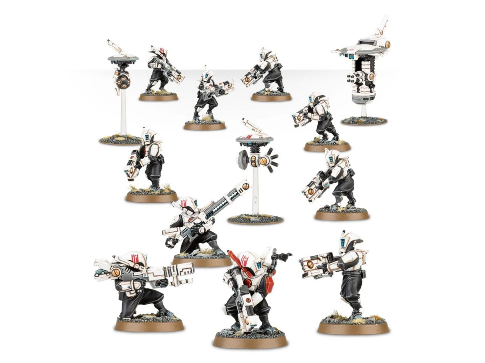 40.000 år ude i den mørke fremtid er der kun krig. Menneskeheden består hovedsageligt af kloner der tjener maskinguderne. De overmenneskelige Space Marines kæmper en bitter kamp mod alle Xenos - Orker, Tau, Eldar, Tyranids og de korrumperende kaoskræfter. Er du klar til at tage de første trin ind i det vældige univers, hvor vejen frem er dækket af dine fjenders blod og luften er tyk af kanonrøg, raketter, plasmakugler og laser? Warhammer 40K er en fantastisk hobby, hvor man selv samler sine figurer, maler dem, skaber flotte kamplandskaber og kæmper med sine venner. Tau er en af de nyeste fjender i 40K universet. De er teknologisk overlegne til mennesker i alle henseender. Deres rustning er smartere og deres våben slår hårdere, men deres blodtørst og vilje til kamp er erstattet af taktisk snilde. Dette sæt indeholder: 13 Pathfinder Team figurer. Figurerne i sættet er ikke malet eller samlet og kræver derfor lim og maling. Vi anbefaler Citadel Plastiklim og Citadel Paint.