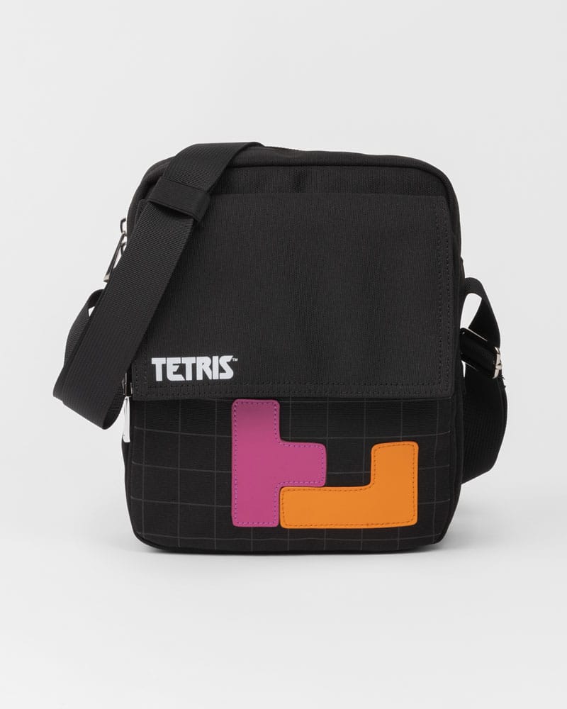 The stylish Tetris™ "Murse" is Water-repellent made from GRS certified recycled polyeser, with a sturdy padded backside for stability and wearing comfort. It contains 2 compartments on the inside and an extra Zipper pouch on front under the covering flap with magnetic lock.