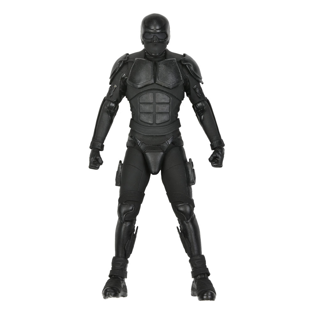 From The Boys, the hit TV adaptation of the popular comic book series! No one knows what hides behind the mask of Black Noir, the Seven's superpowered ninja... a mystery that makes his death-dealing skill even more terrifying. This 7" scale action figure features a detailed replica of the screen costume and comes with interchangeable hands and two knives that fit into sheaths on the figure's hips. Collector-friendly window box packaging with opening front panel.