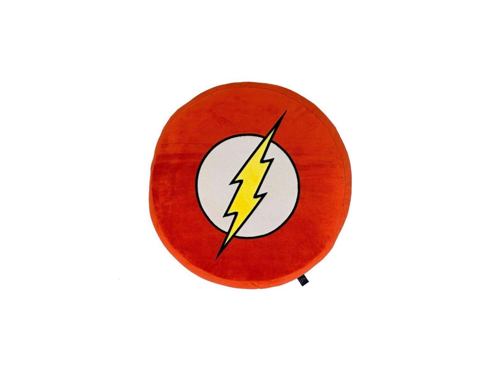 Sej rund sofapude med The Flash logo. Puden er rund med en diameter på 35 cm.