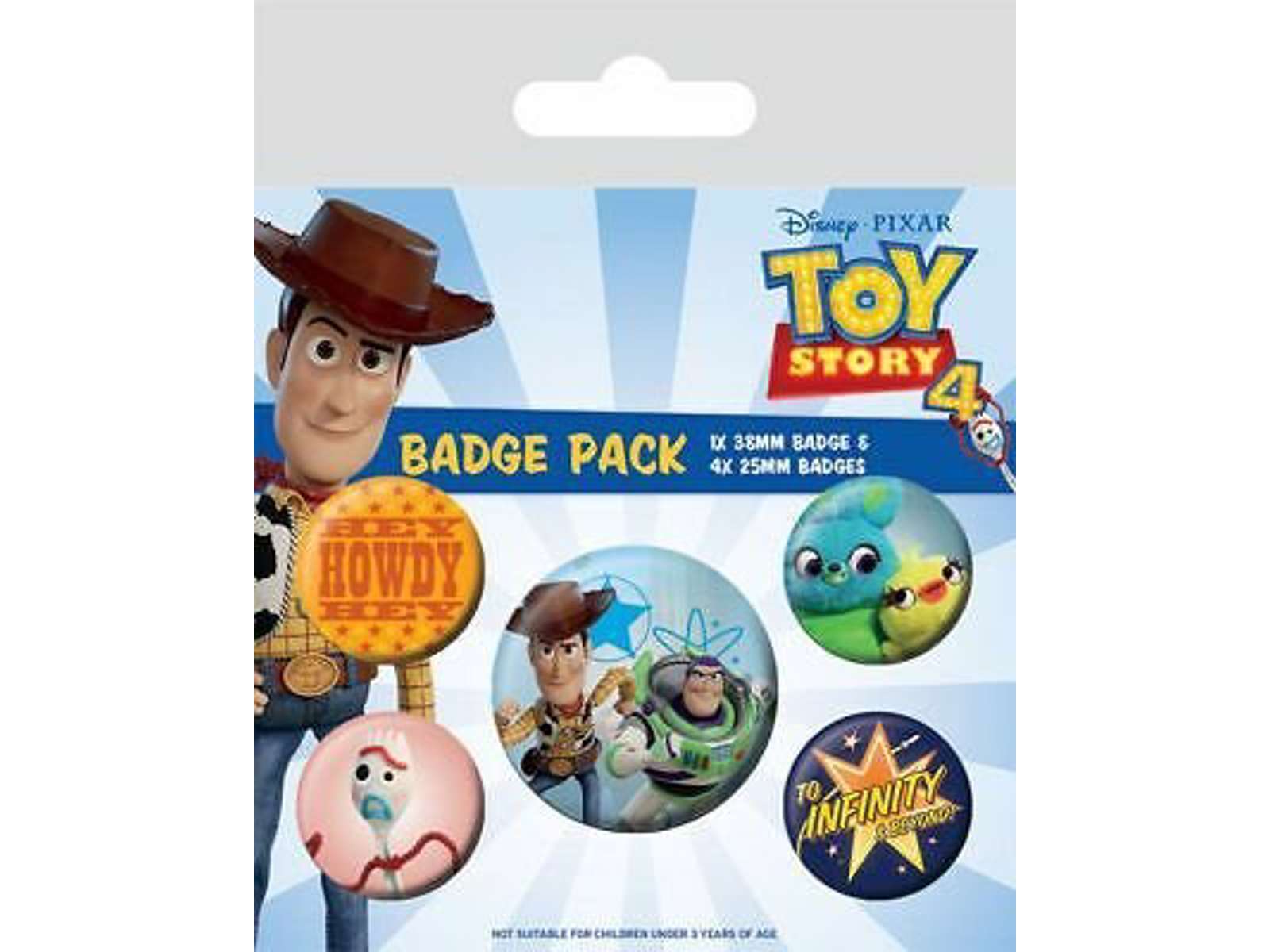 Pakke med 5 seje badges fra Toy Story 4.