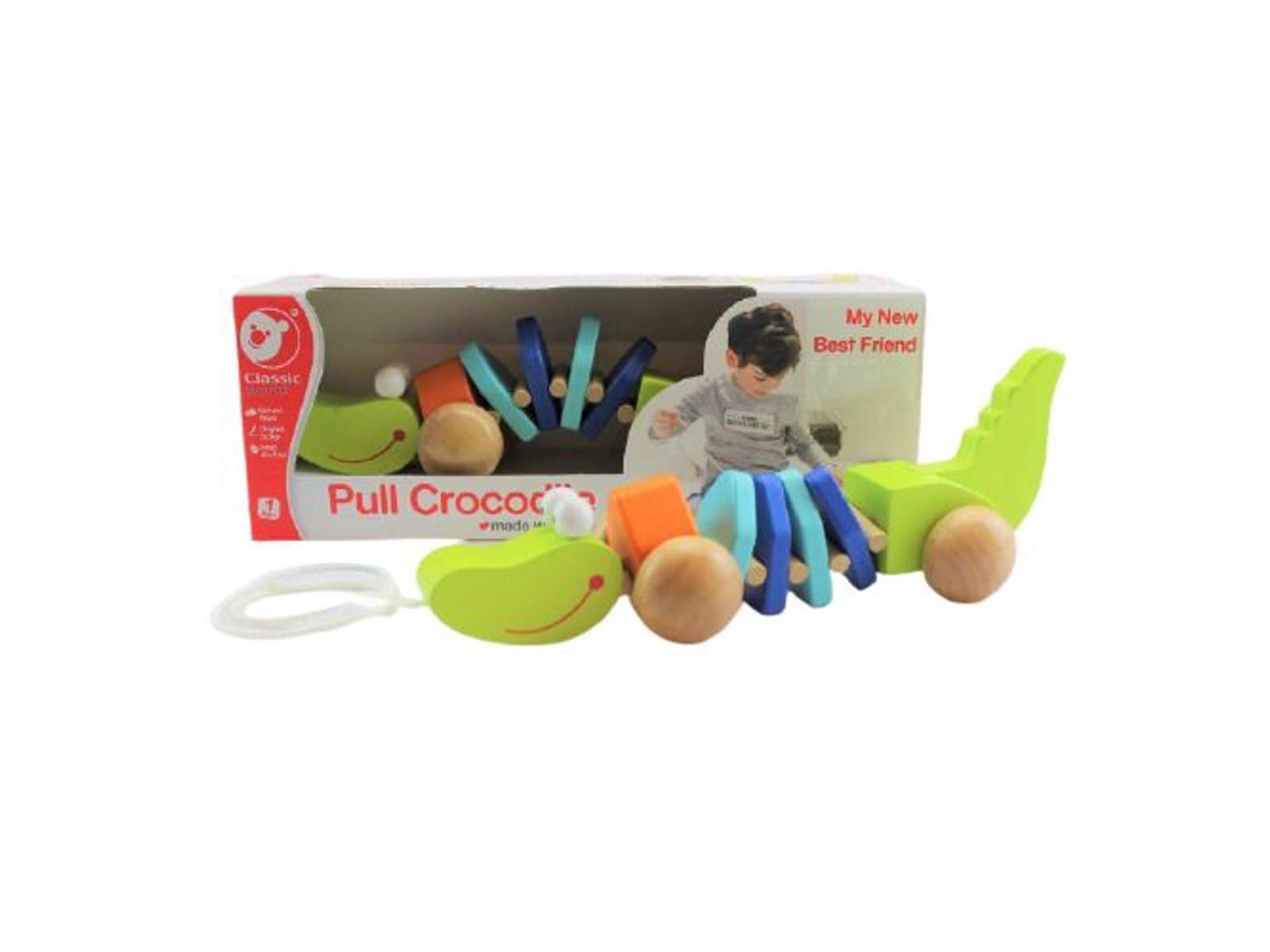 Træk krokodille med snor i træ på 26 cm fra Classic World