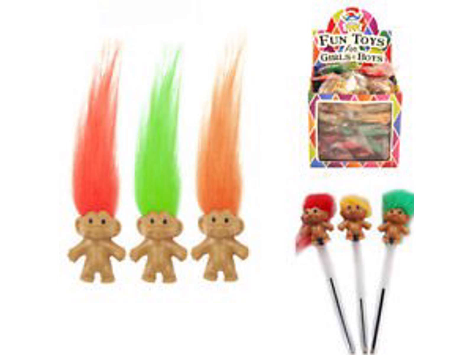 Den kan sidde fast på en blyant. Kommer med 3 forskellige farver hår. Kontakt butikken for lagerstatus hvis en bestemt ønskes.