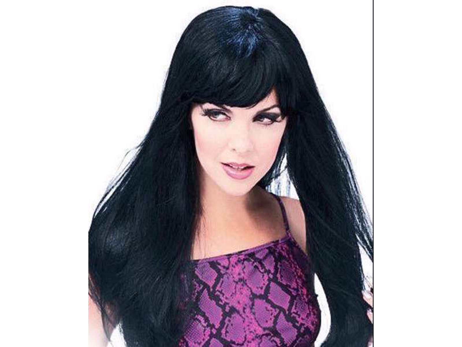 Rubies Fashion Glamour Paryk med lang sort hår. Deluxe kvalitet. Vaskbar.