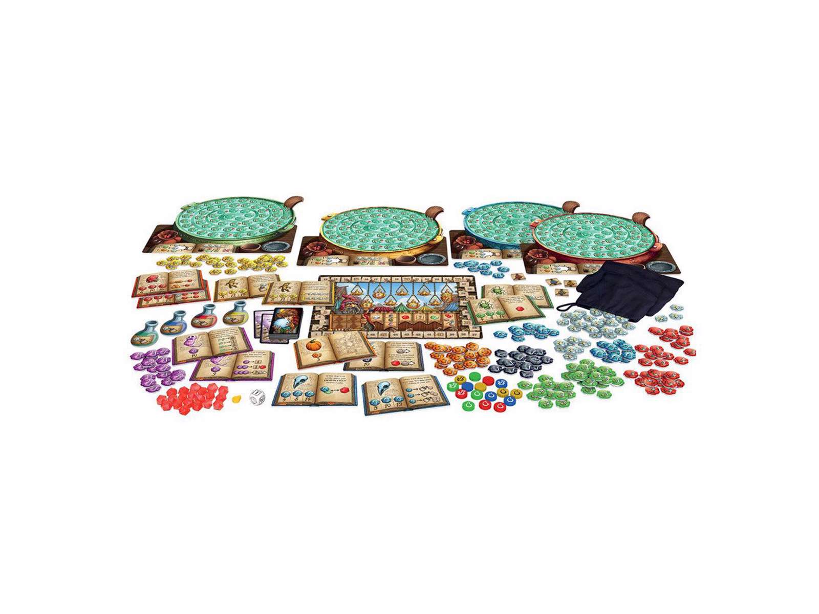 I Kvaksalver er spillerne, kvaksalvere og svindlere, der brygger deres egne hemmelige eliksirer med ingredienser trukket fra en stofpose.