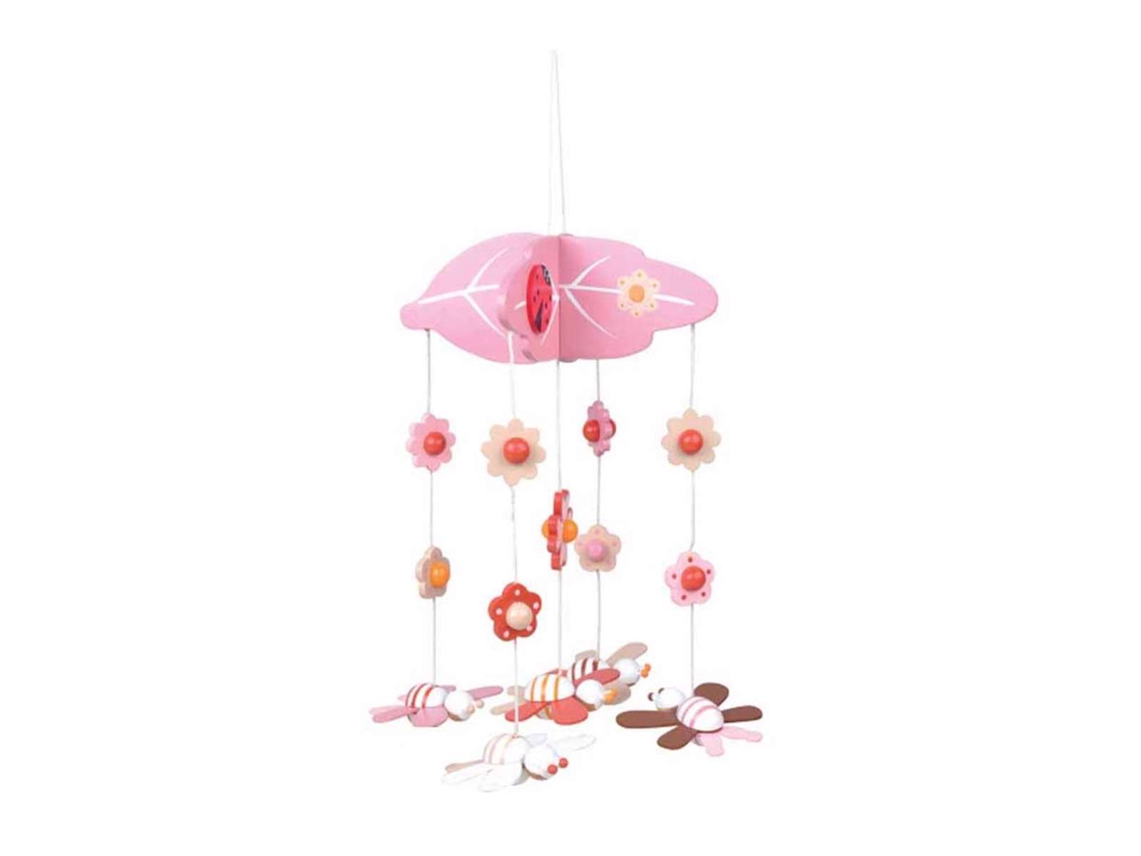 Flot uro i træ fra Magni med blomster-og-bier-tema, som kan hænges ved sengen eller puslebordet, så baby har noget spændende at kigge på. Når dit barn bliver større, kan uroen hænge og pynte på børneværelset, hvor den vil bidrage med genkendelighed og tryghed.