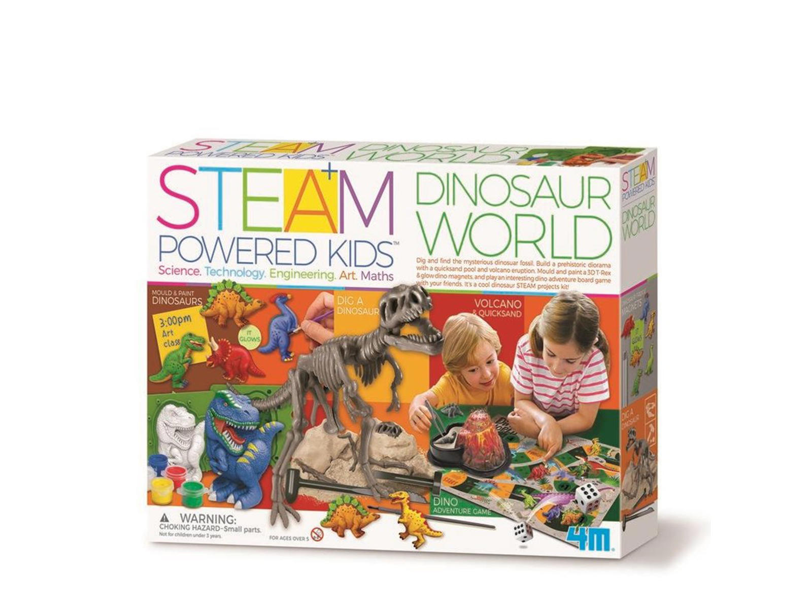 Grav og find det mystiske dinosaurfossil. Byg et forhistorisk diorama med en kviksandspool og et vulkanudbrud. Form og mal en 3D T-Rex og glødende dino-magneter, og spil et interessant dino-eventyrbrætspil med dine venner. Det er et sejt STEAM-projektsæt med dinosaurer!