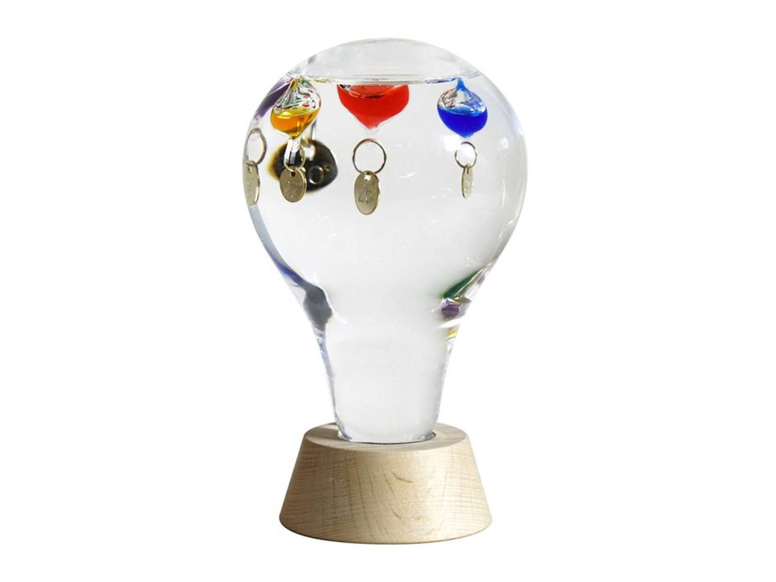 Virkeligt flot Galileo termometer der vil pynte i ethvert hjem. Det måler 14 cm. Galileo Galilei havde allerede udviklet det håndholdte termometer allerede i det 16. århundrede. Galileo kaldes fader til moderne videnskab og hans termometer var instrumental i mange vigtige opdagelser inden for en række videnskabelige områder.