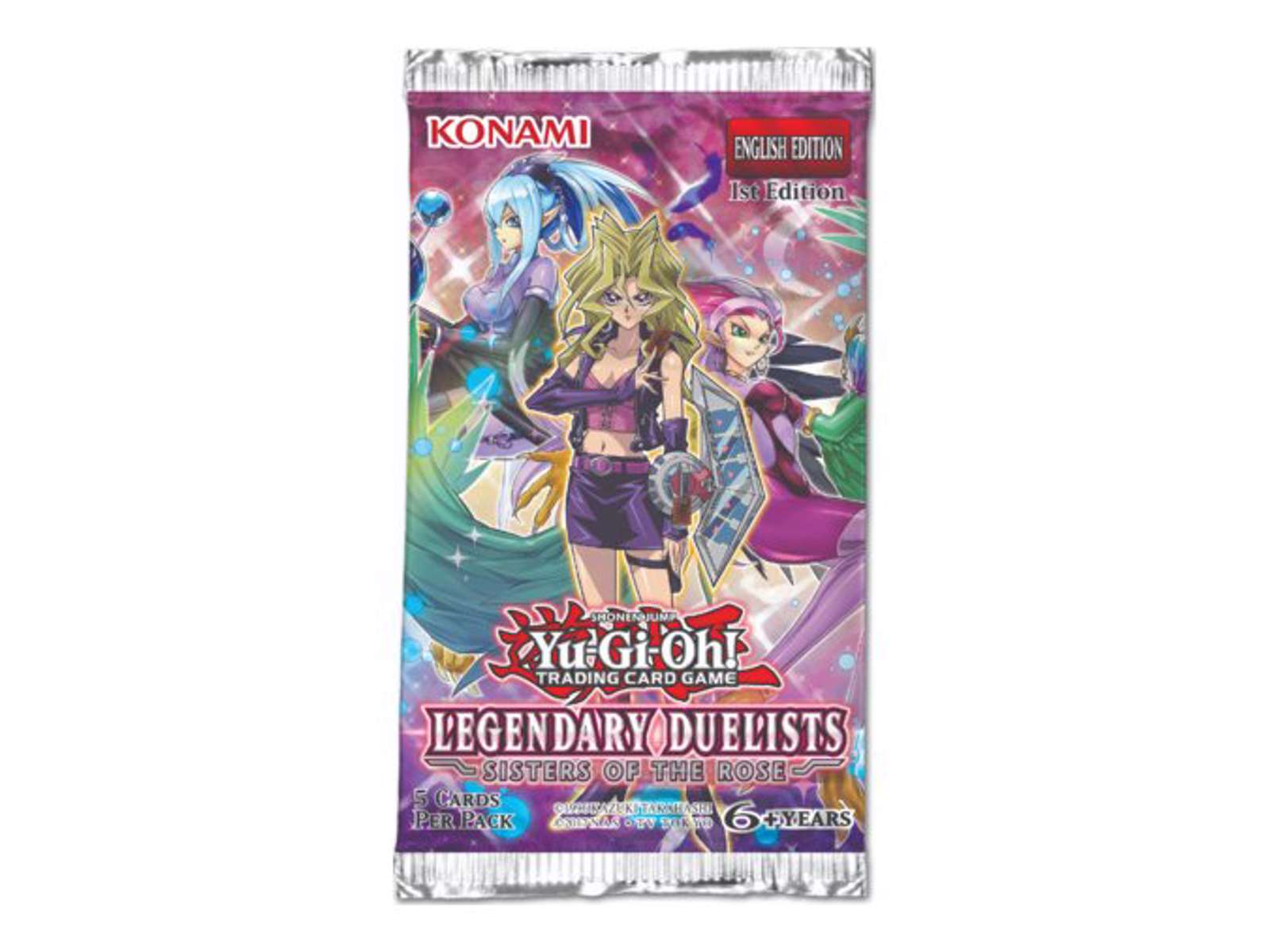 Yu-Gi-Oh! Legendary Duelists Sisters of the Rose booster pakke. Hver pakke indeholder 5 Yu-Gi-Oh! samlekort.
